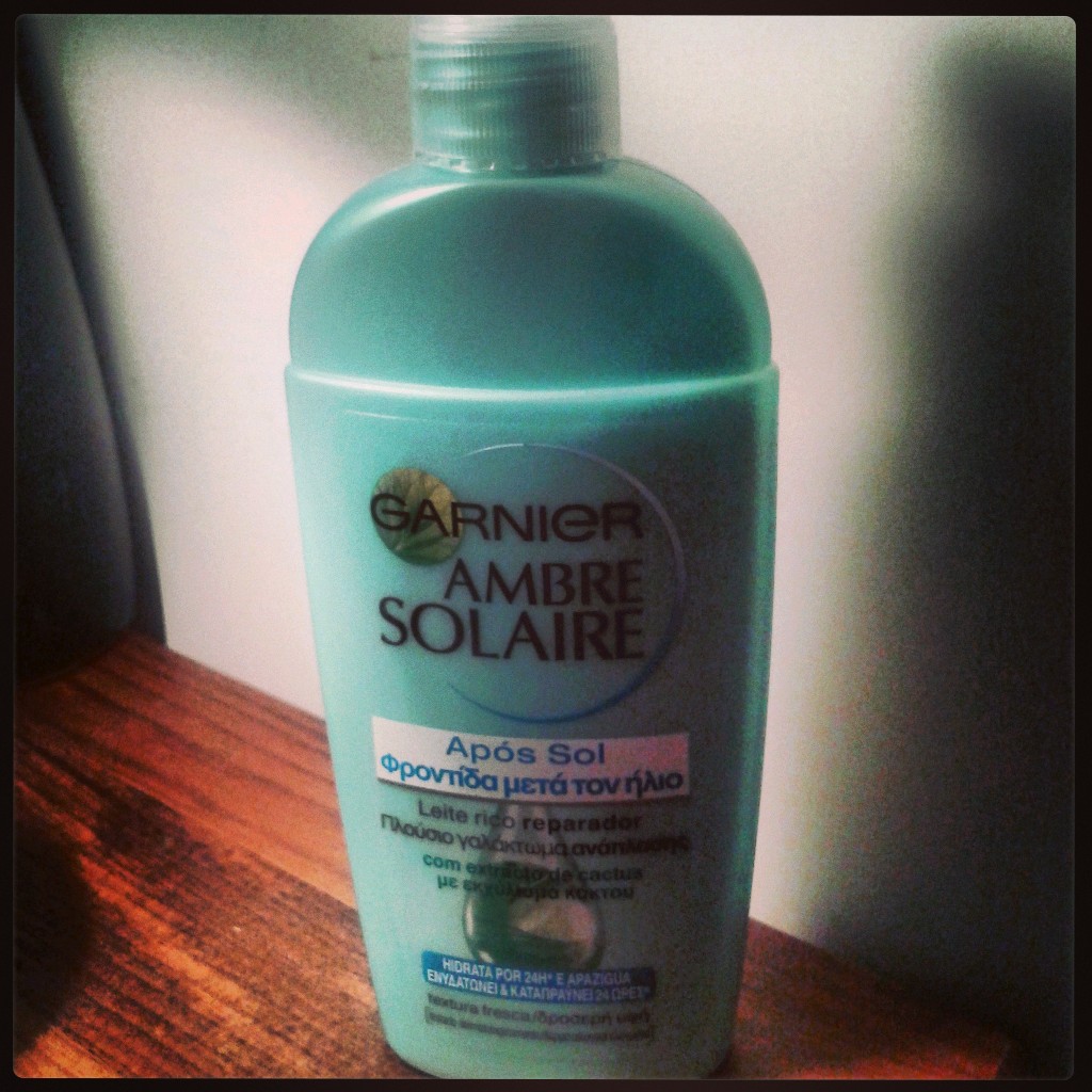 O sol esteve radiante durante o dia,e a minha pele ressente-se um pouquinho agora...valho-me da minha loção pós-solar da Garnier,que não só trata a minha pele de forma maravilhosa,como lhe incute um delicioso cheiro a pêssego. Adoro!!
