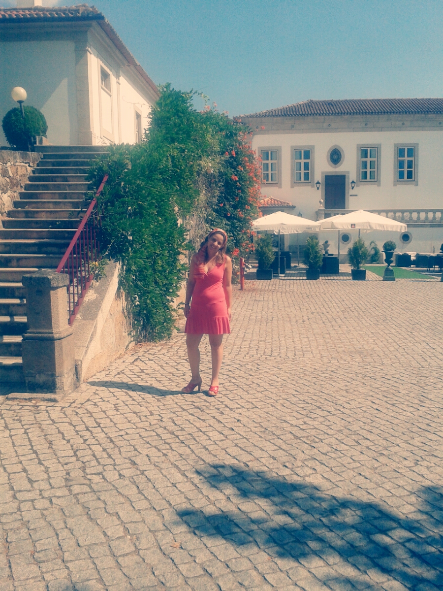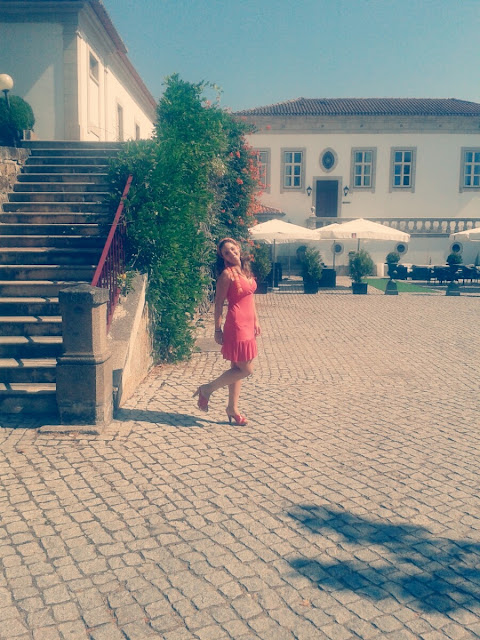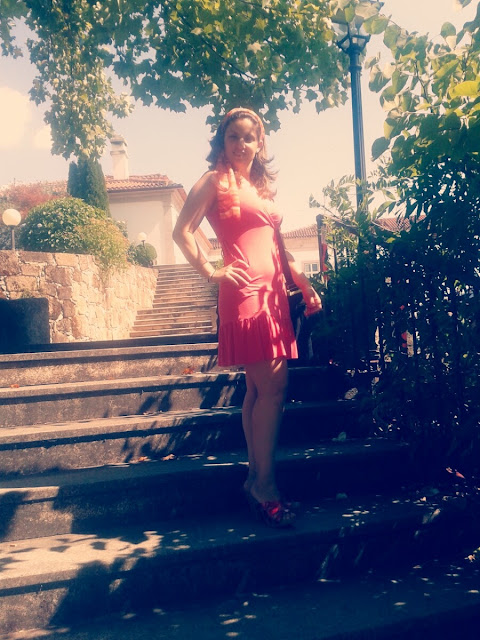 Para tal efeito decidi vestir-me confortavelmente, optando por um estilo boho, num quase look total coral (a minha cor favorita para as estações quentes), com a ajuda de um vestido Insenço, umas sandálias da quase extinta Bata, e um lenço Details (peça que adoro usar principalmente ao pescoço, no entanto, com o calor gosto de arranjar alternativas). Como o meu biótipo é triângulo invertido, o vestido ser do tipo "baby doll" e vincar-me a cintura, favorece-me tornando-me mais esguia, visto que tenho o tronco grande demais para a dimensão das pernas, o que me faz parecer mais baixa.