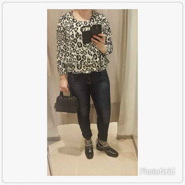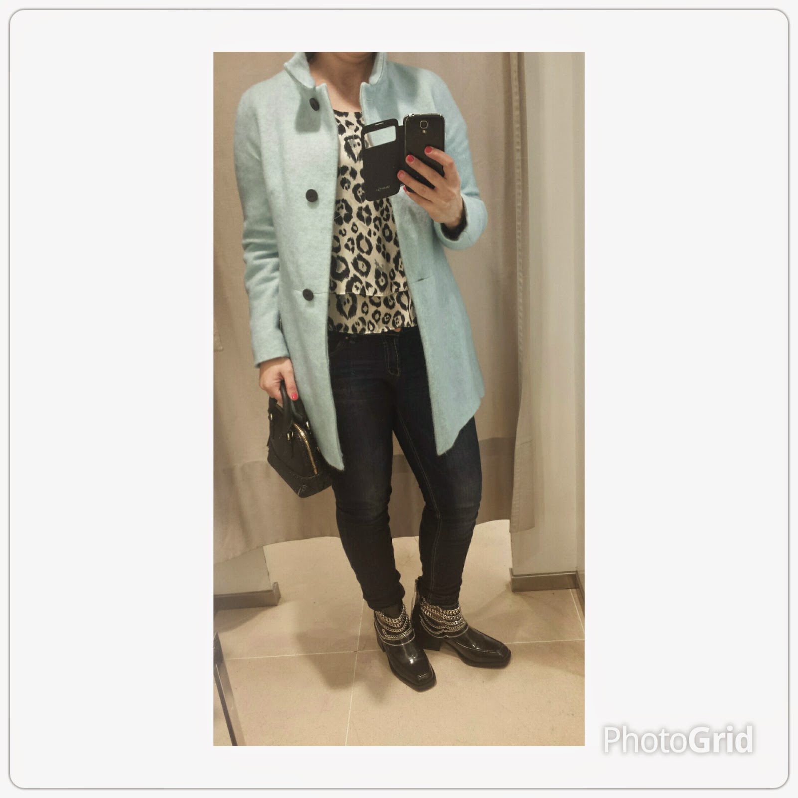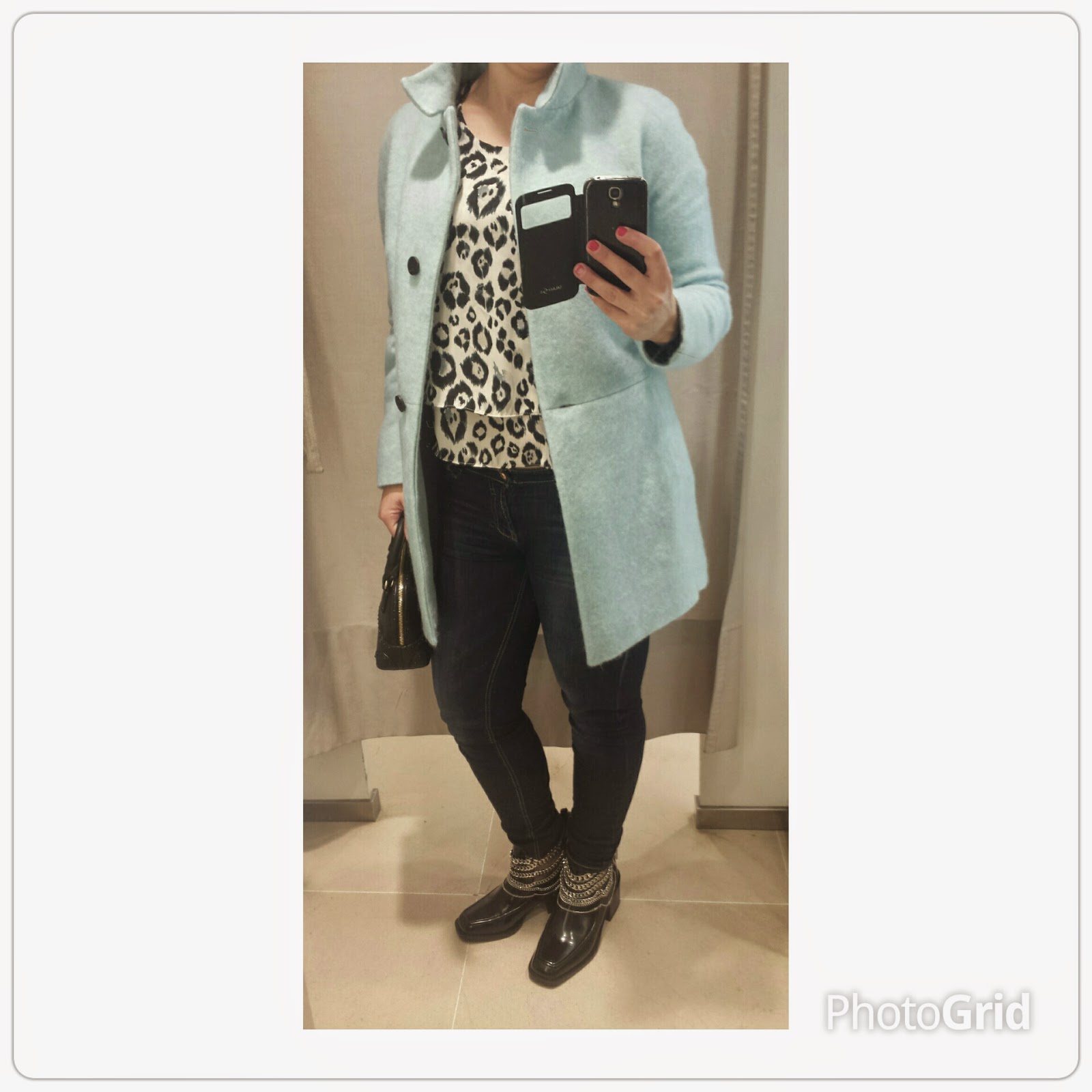 In this way, and "mood: love in first sight" for these wonderful boots, adorned with silver chains, and, with the original animal print blouse, created an informal look based on blue tones. The woolen overcoat is very welcoming, a color that favors any type of skin color, straight cut and adaptable to a day of work or a more sophisticated event.